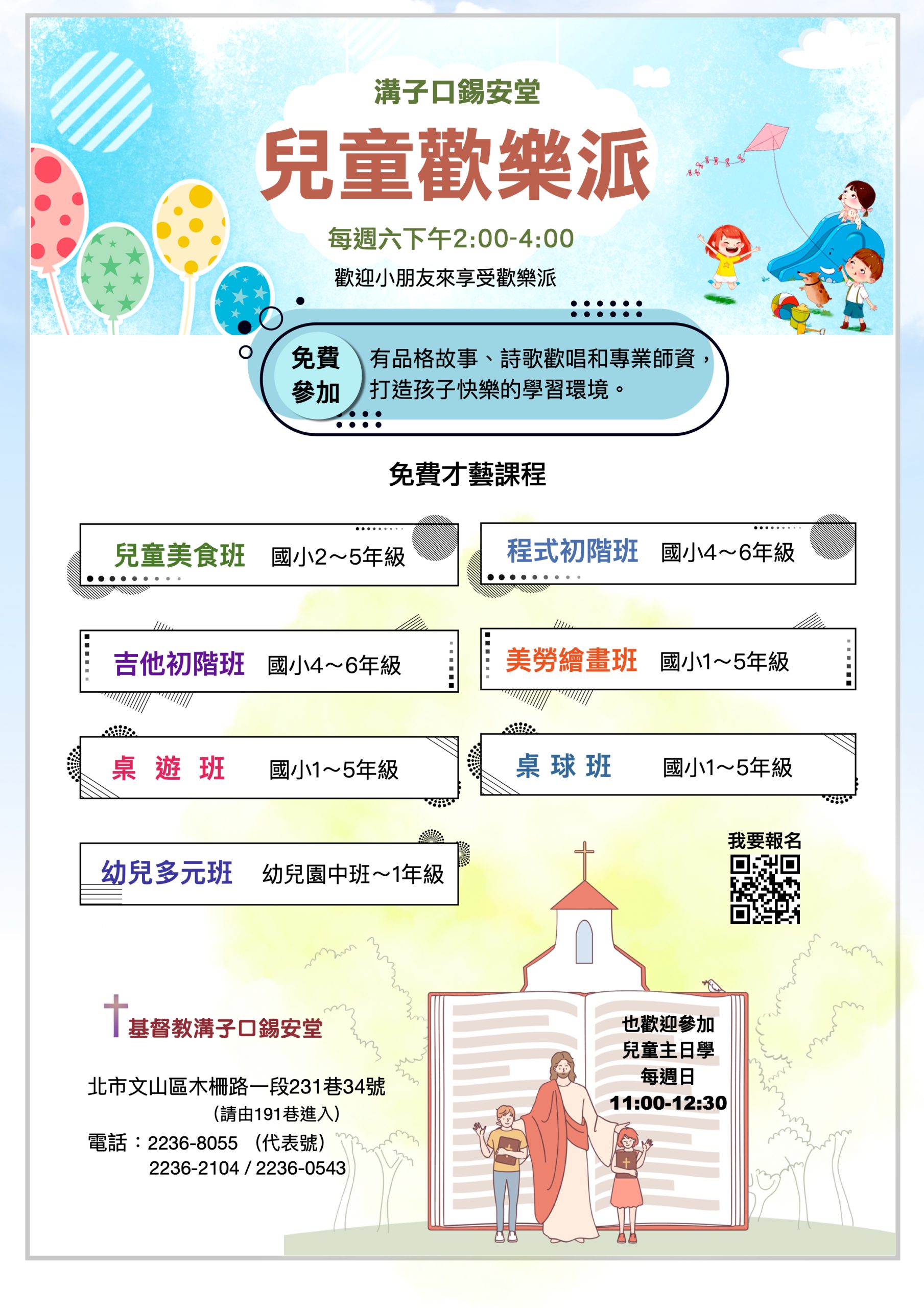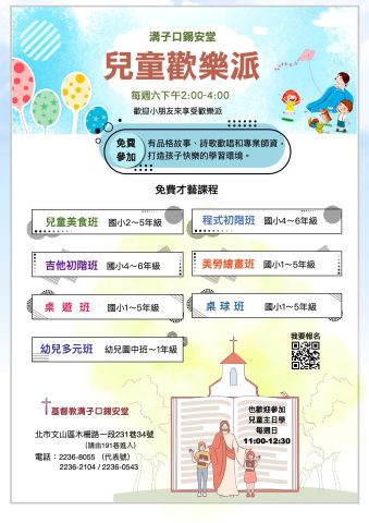兒童歡樂派是暑假週末的好去處,不只是為了學才藝,更是享受學習的樂趣。兒童歡樂派才藝班的課程略有變動: 程式設計班初階班(共10堂課),5位學生報名才會開班,且名額有限。 吉他班初階班:小班制,最多收5位學生。 歡迎孩子報名參加喔!