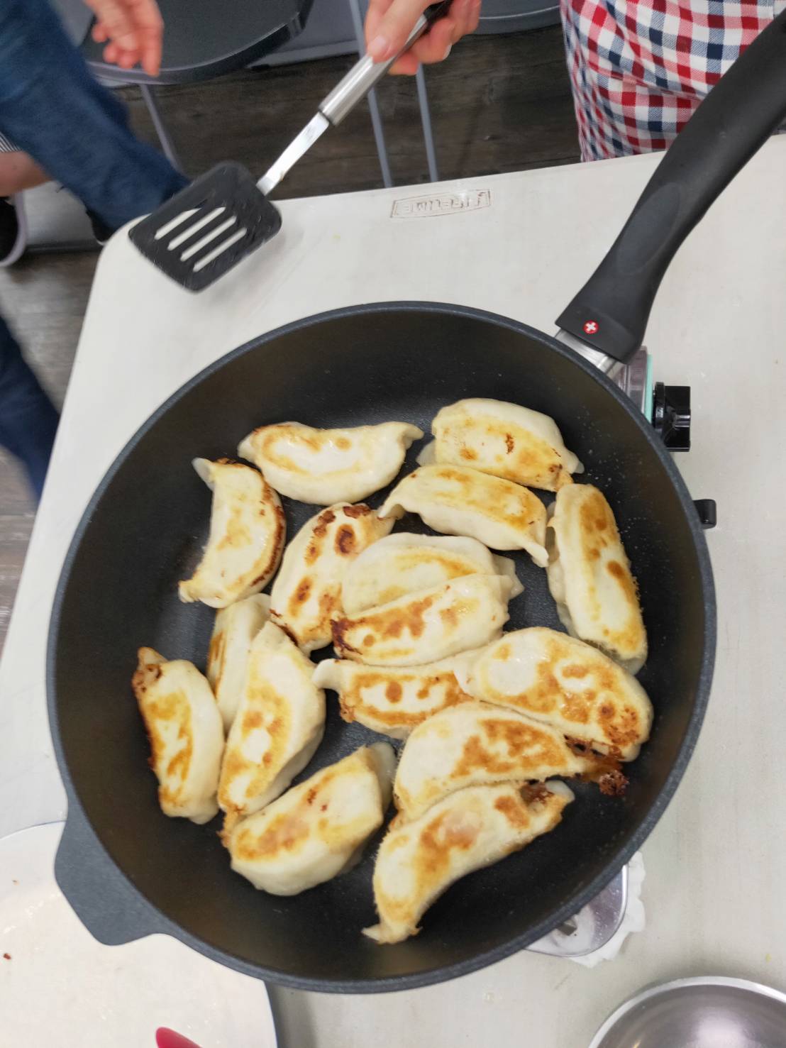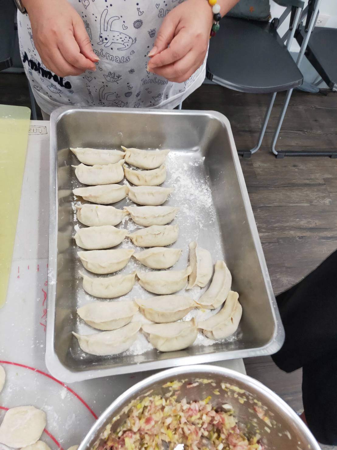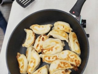 「媽咪食尚小窩這次做的東西實在太好吃了~超級美味的三鮮鍋貼,跟「四海」「八方」相較,真的不遑多讓! 老師準備三大盤料,大家全部一掃而空,真學得過癮、吃得滿足!