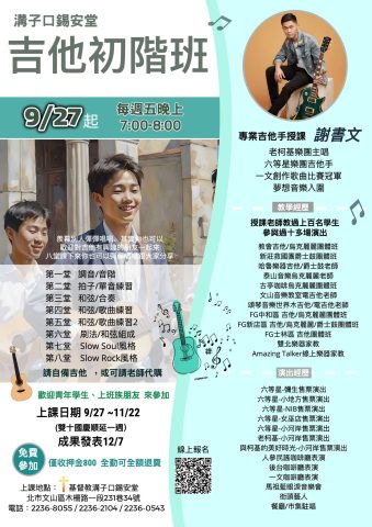 上課地點:台北市文山區木柵路一段231巷34號(基督教溝子口錫安堂)