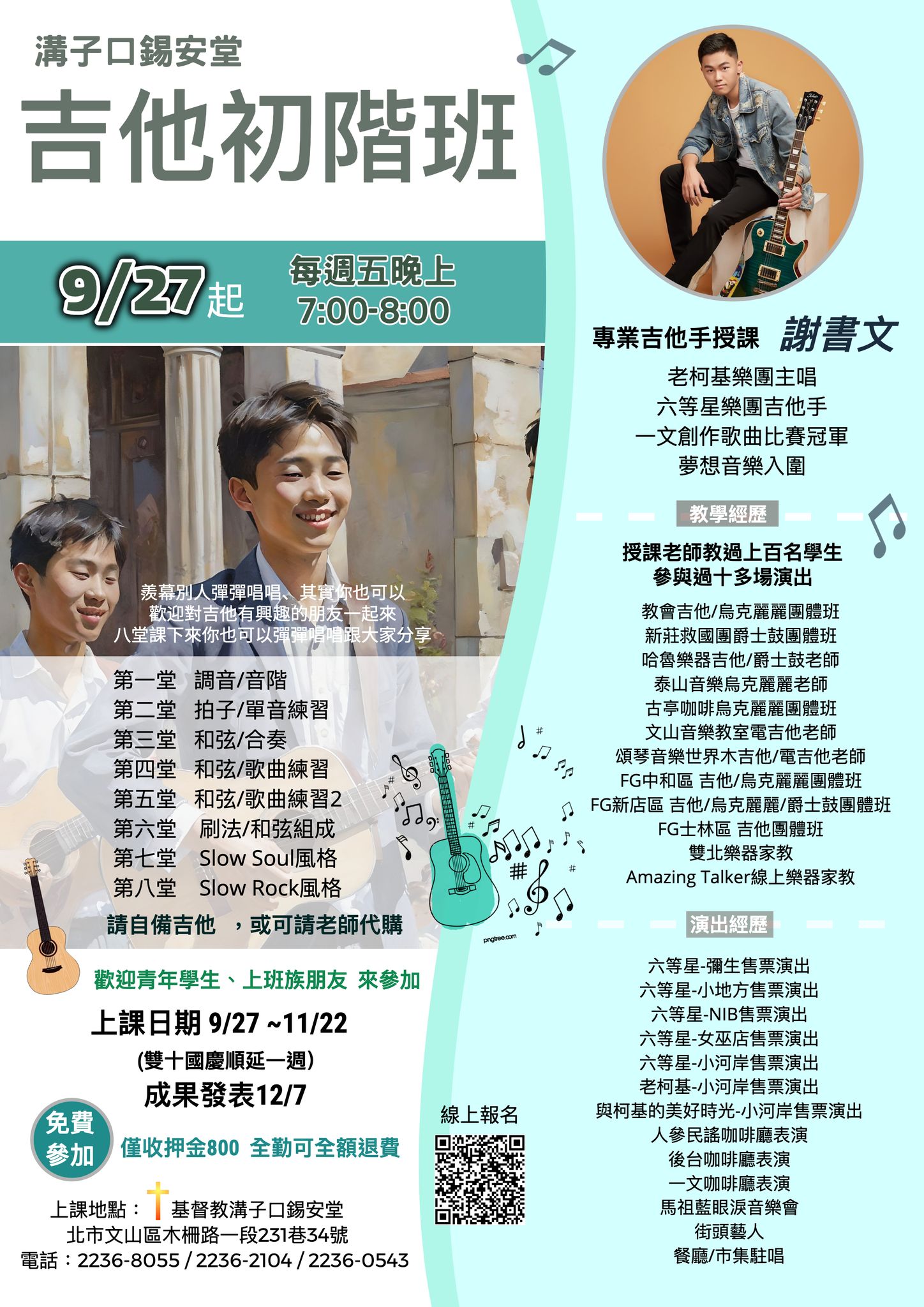 招收對象:高中以上想學吉他的朋友