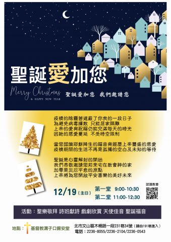 今年有兩堂聖誕主日,您可以挑選自己合適的時間參加,