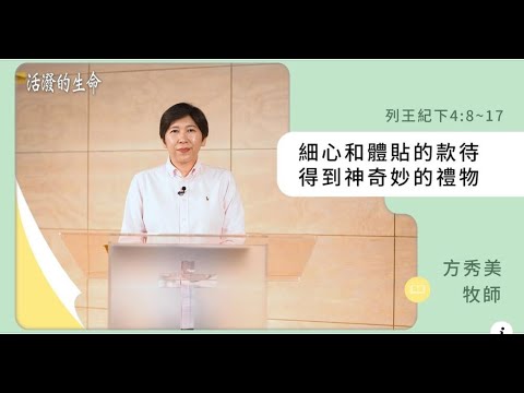 【活潑的生命】2024.6.26 細心和體貼的款待 得到神奇妙的禮物(列王紀下4:8~17)~方秀美牧師