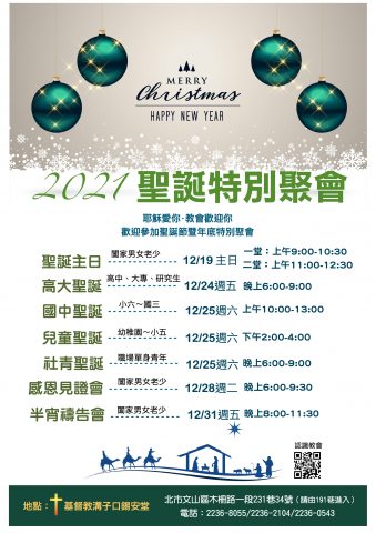 歡迎您一起來教會過聖誕、也一起數算主恩典、用感恩告別過去,用禱告迎接來年!