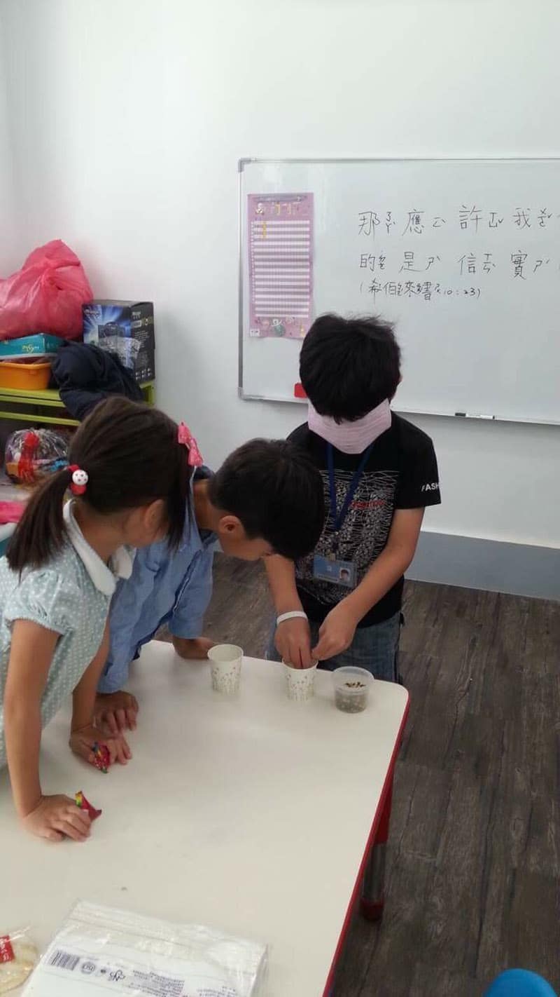 除了唱歌、聽故事、禱告,最後還有美勞時間,這次帶小朋友做樹,藉機訓練小朋友的小肌肉及專注力,也發揮他們的創意。